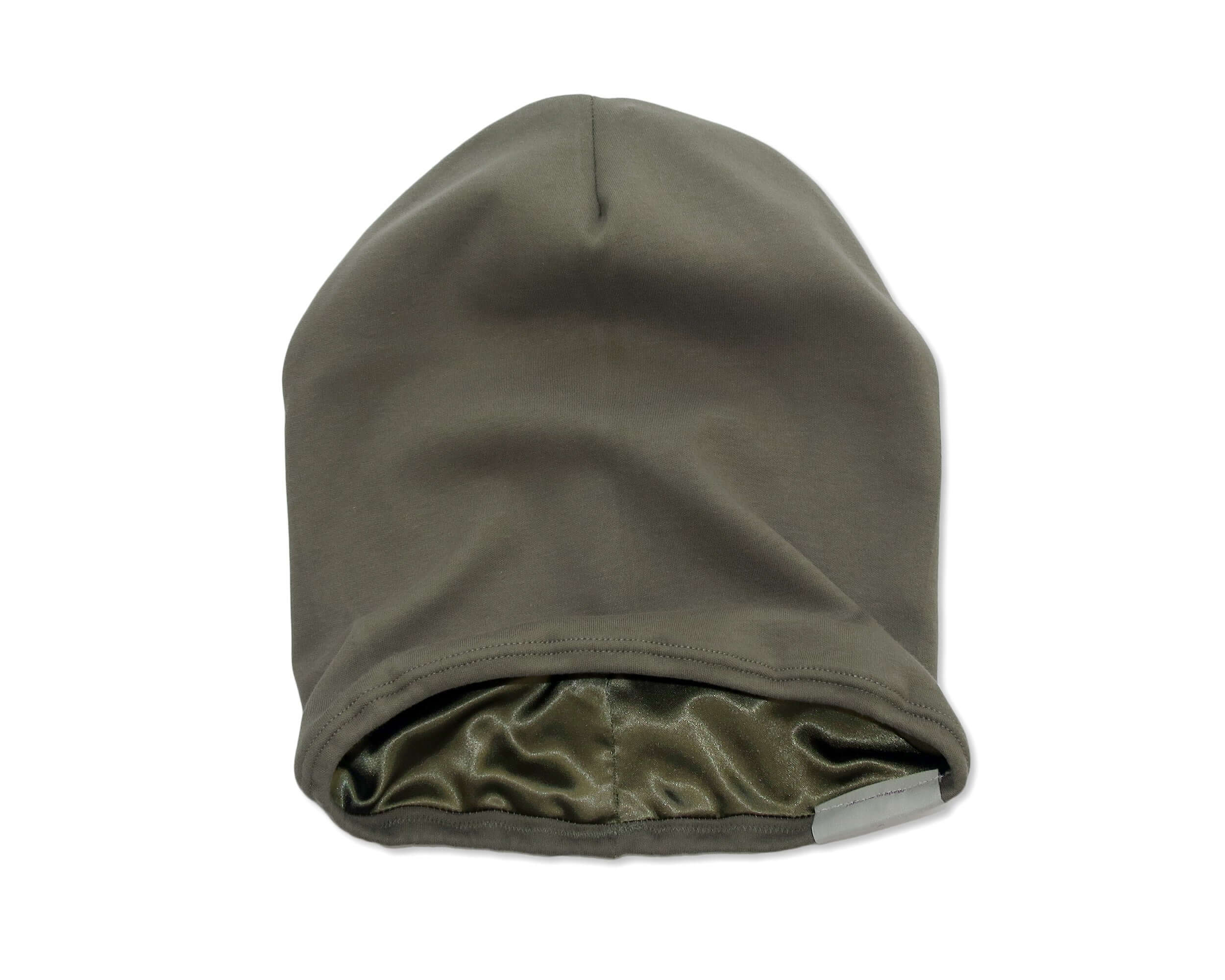 Khaki satinforet hue til kvinder og mænd - blød og varm hue med satinfor for at beskytte håret
