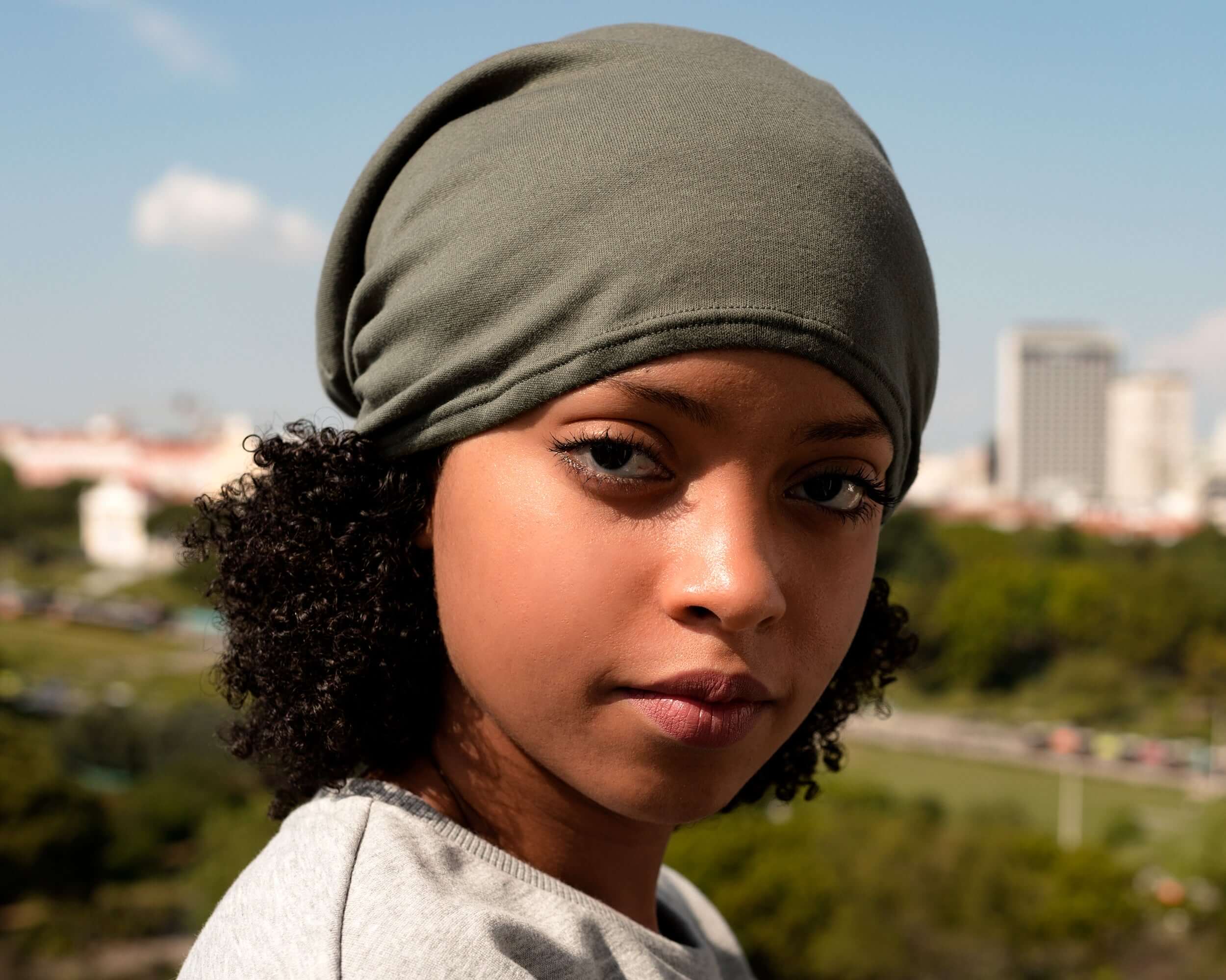 Vores khaki satinforede hue er den perfekte måde at holde dit hoved varmt og dit hår beskyttet på. Fremstillet af blødt og åndbart stof, denne beanie er behagelig at have på hele dagen. Satinforet hjælper med at reducere friktion og knækkede hårstrå, holder dit hår glat og fri for krus.