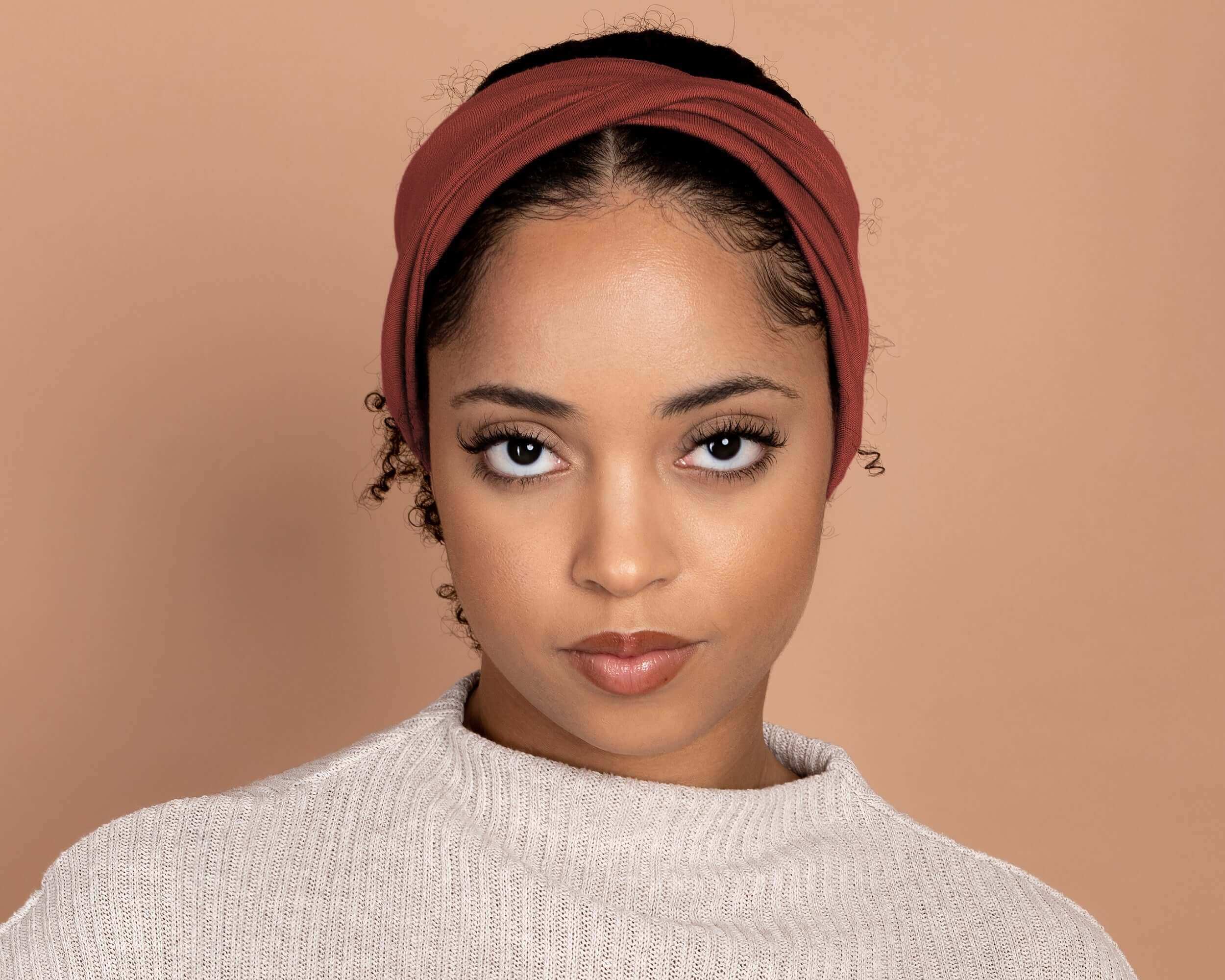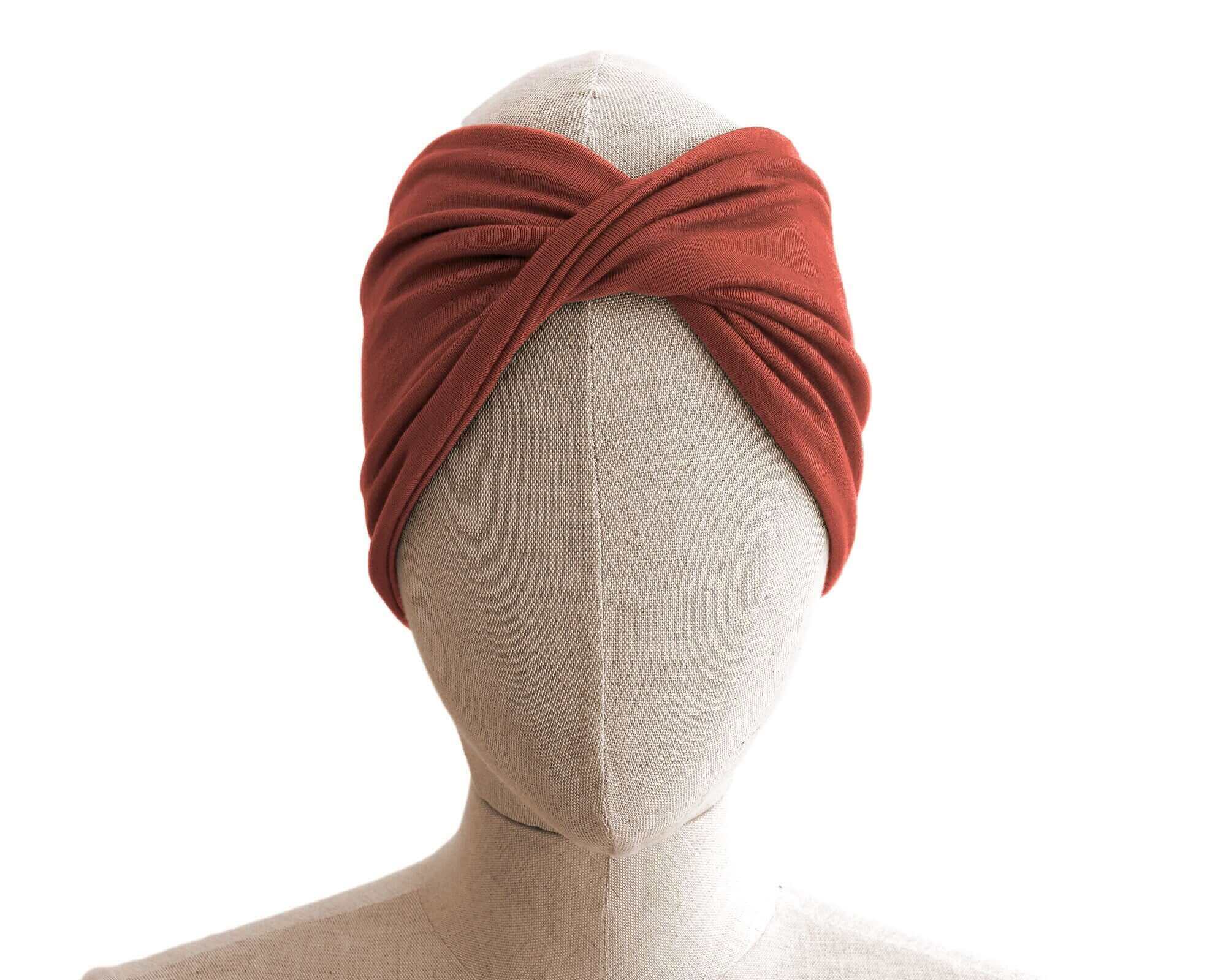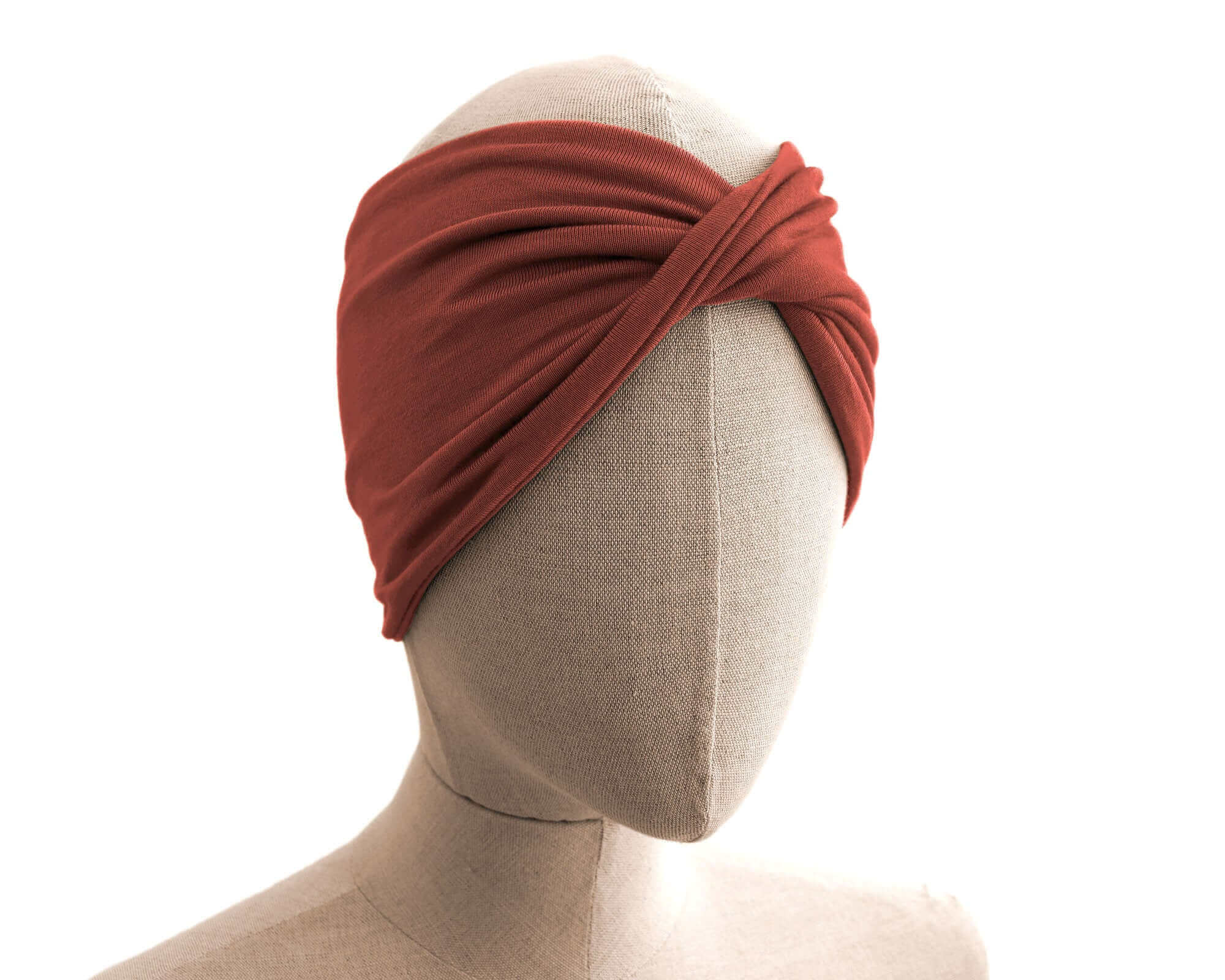 Be the center of attention with our Rust Orange, Twist Stretch Headband. Crafted from 95% wood pulp-sourced viscose for ultra-soft comfort and spandex for stretchability, this barely-there accessory will add a touch of sophistication to any look. Style it however you want—in the front or on the side—and enjoy a custom fit with 6"(15 cm) wide and a varying circumference of 6.5"(30cm) to 23.5"(60 cm). Featured in a range of prestigious publications, it's the perfect year-round hair accessory.