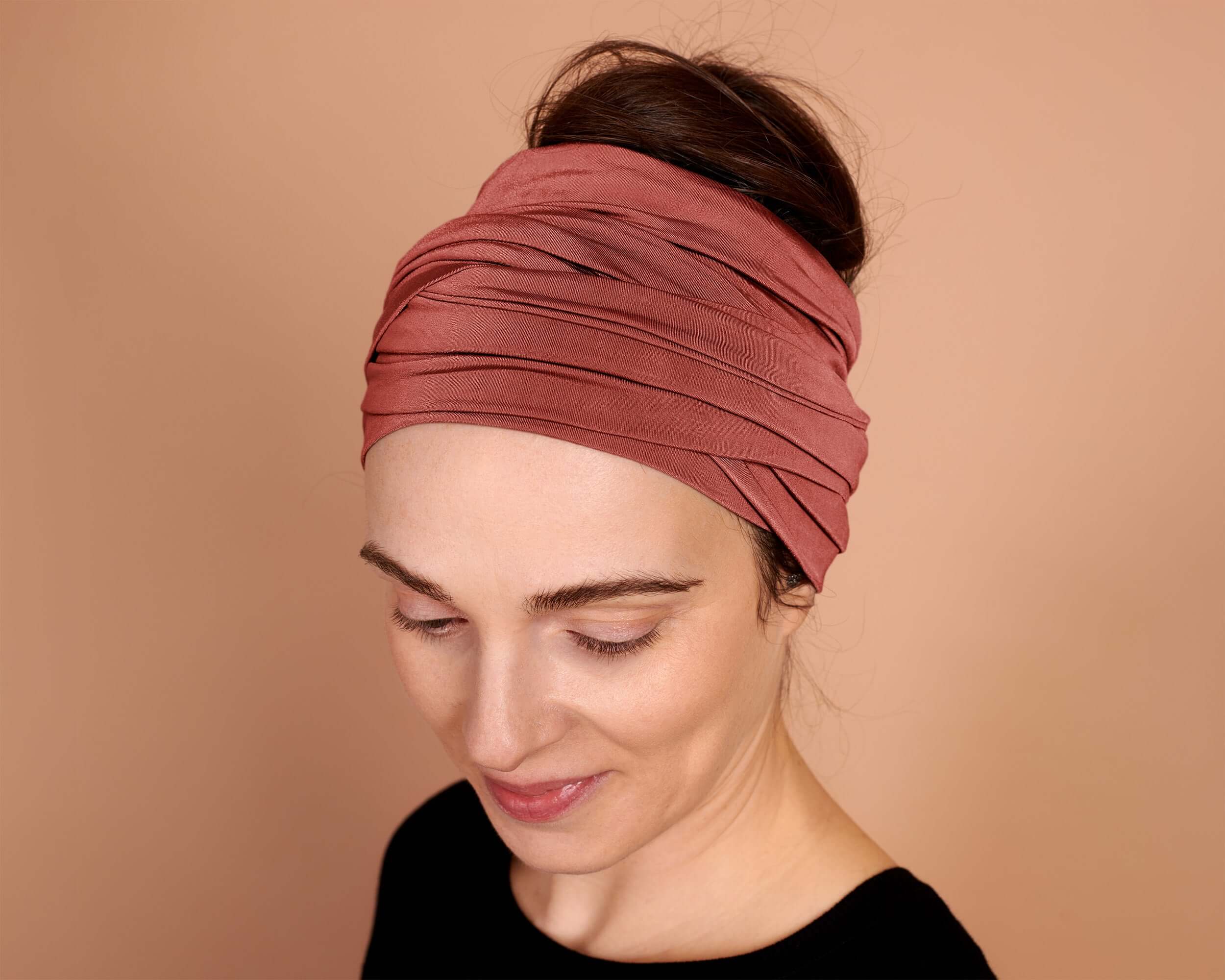Woman wearing a Clay Rose Boho Head Wrap Wide Hair Wrap