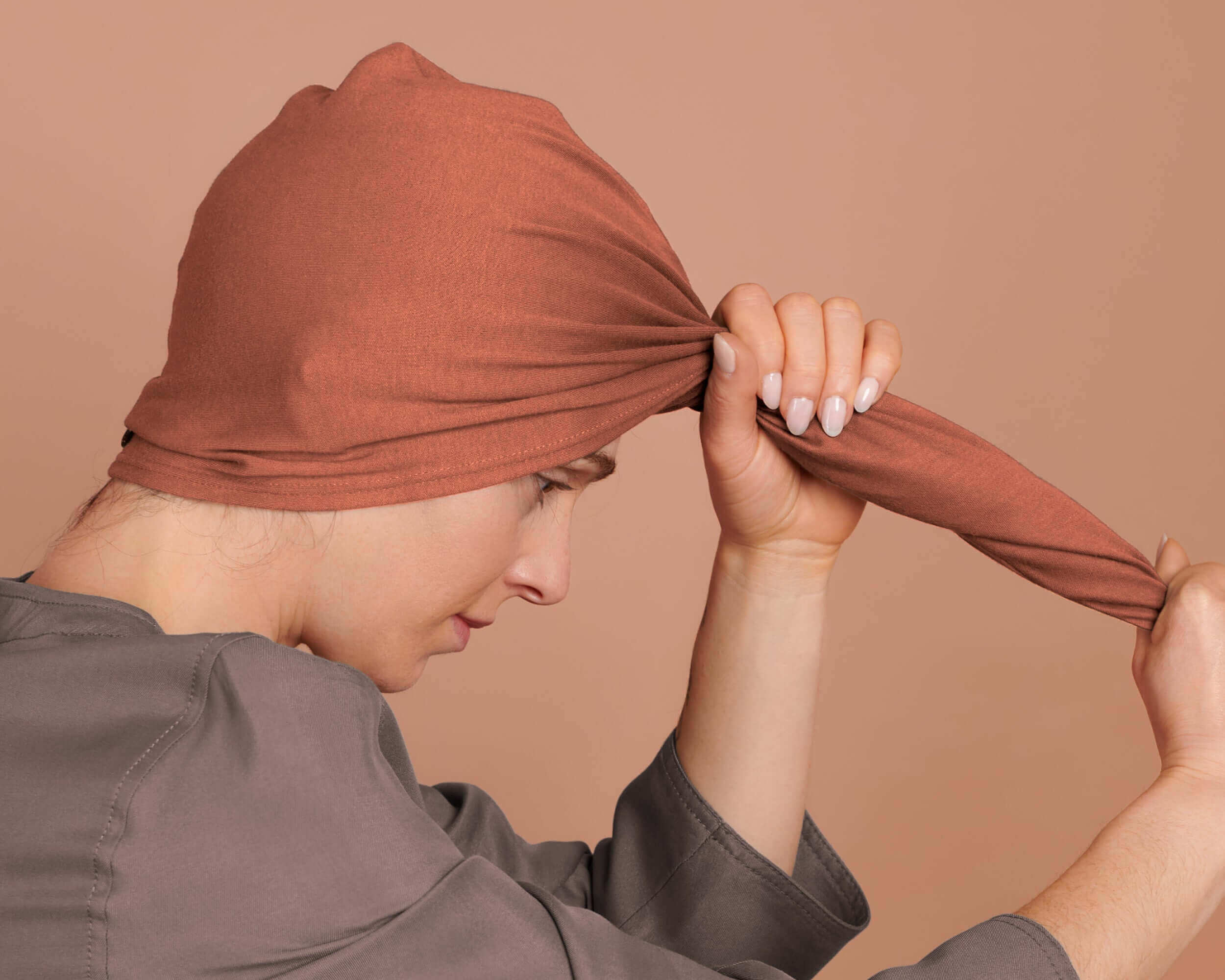 Our Burnt Orange t-shirt hair towel hood is the perfect way to dry your hair without causing frizz or breakage, and it's also better for the environment than microfiber towels.