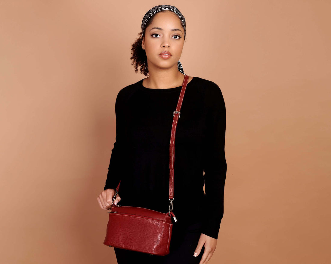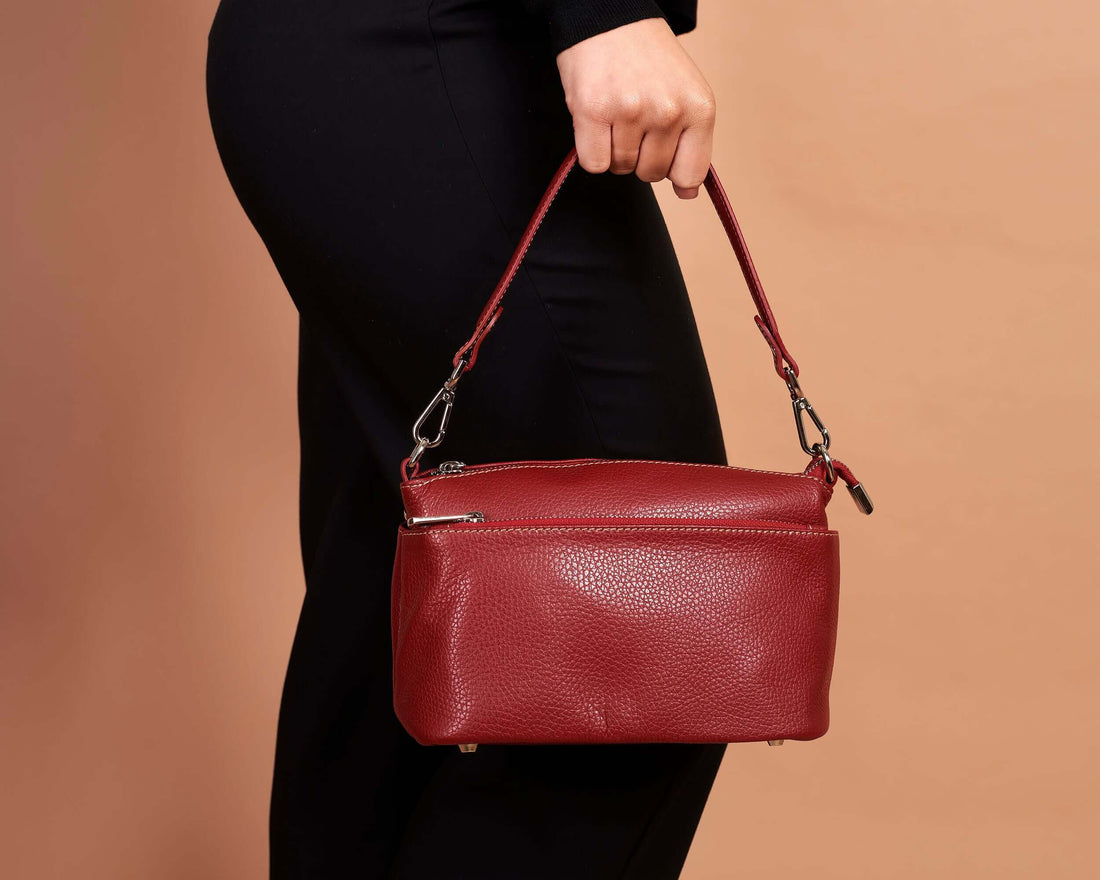 Bolso de Hombro de Cuero Italiano Burdeos Rojo, Bolso Pequeño Cruzado