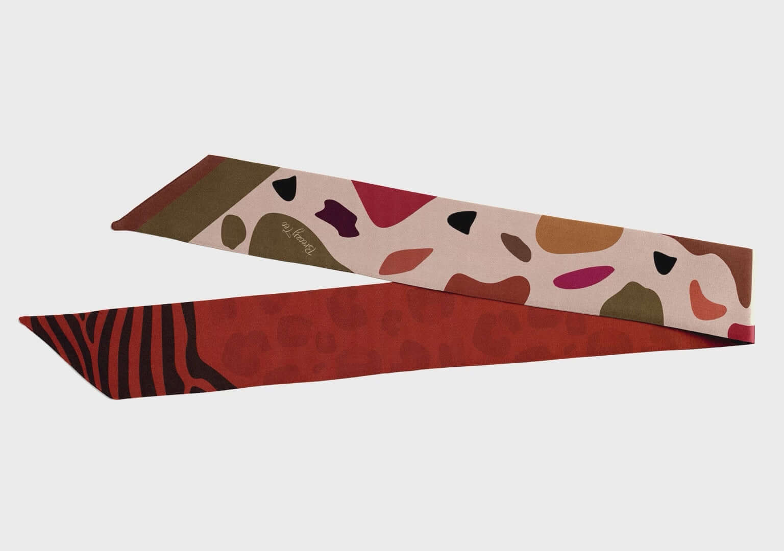 Double-Sided Safari Animal Silk Twill Skinny Scarf