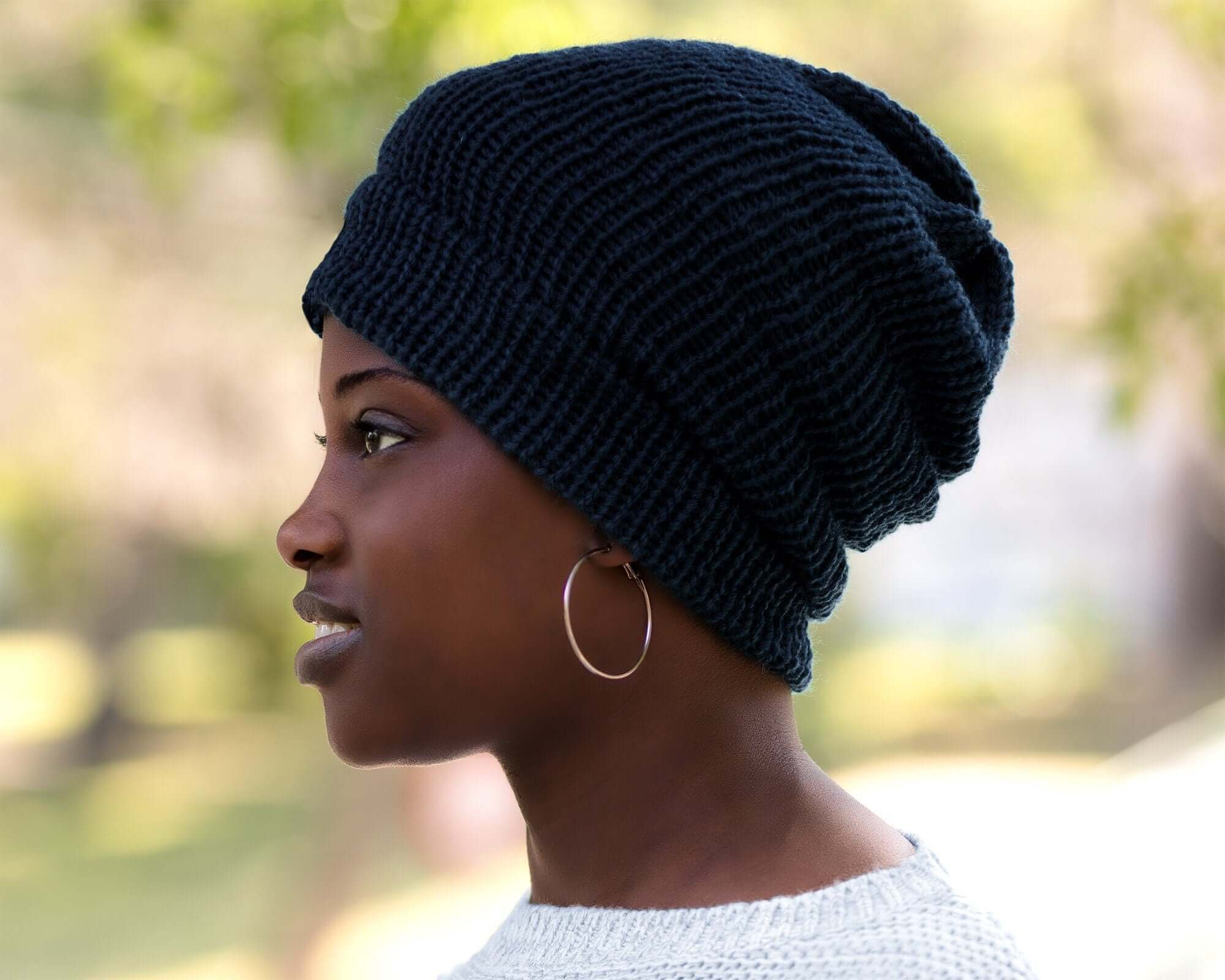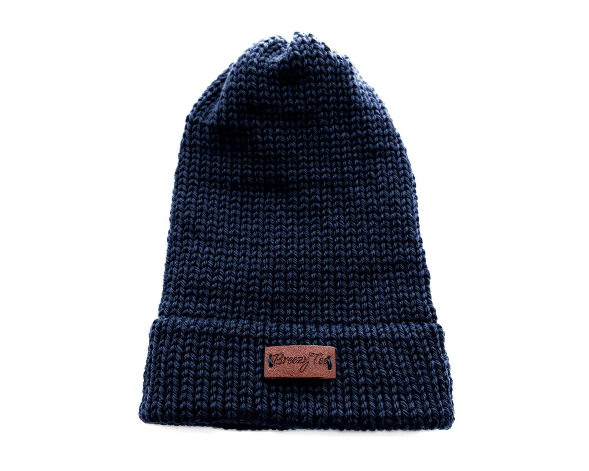 Navy Blue Satin Lined Knit Beanie Wool Mix