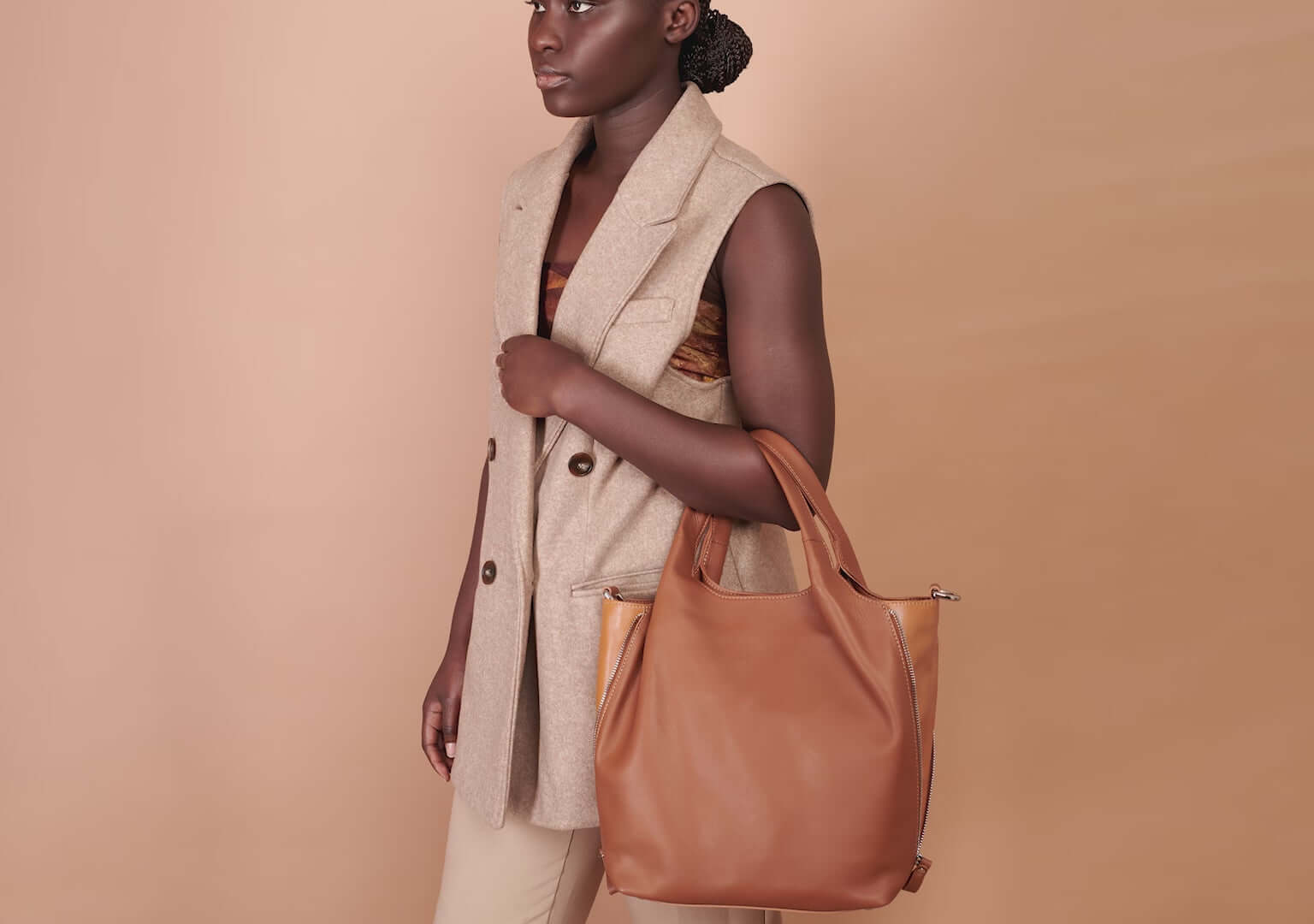 Notre sac fourre-tout "Maya" est une fusion exquise d'élégance, de luxe et de commodité. Confectionné en Italie avec du cuir véritable dans un riche marron chameau, ce sac dispose de côtés extensibles doubles qui offrent une seconde forme grâce à une simple fermeture éclair. Portez-le avec sa bandoulière attachée, ou ajoutez la large bandoulière amovible pour le porter en travers du corps ; le choix vous appartient. Entièrement doublé avec des poches et doté d'une fermeture éclair supérieure et d'un bouton-pression, le sac "Maya" est un accessoire sophistiqué et intemporel qui sera sûrement un compagnon de confiance pendant des années.