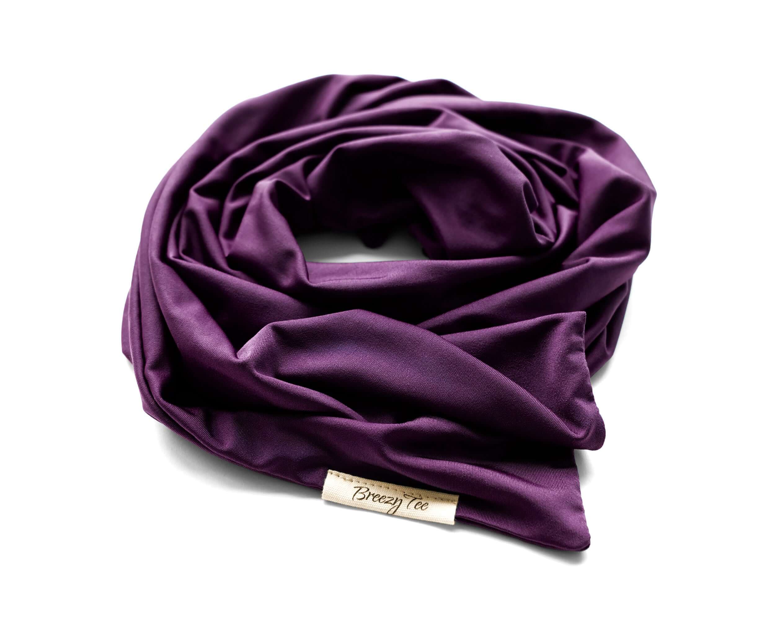 Woman wearing a Boho Head Wrap Wide Hair Wrap in Italian Plum