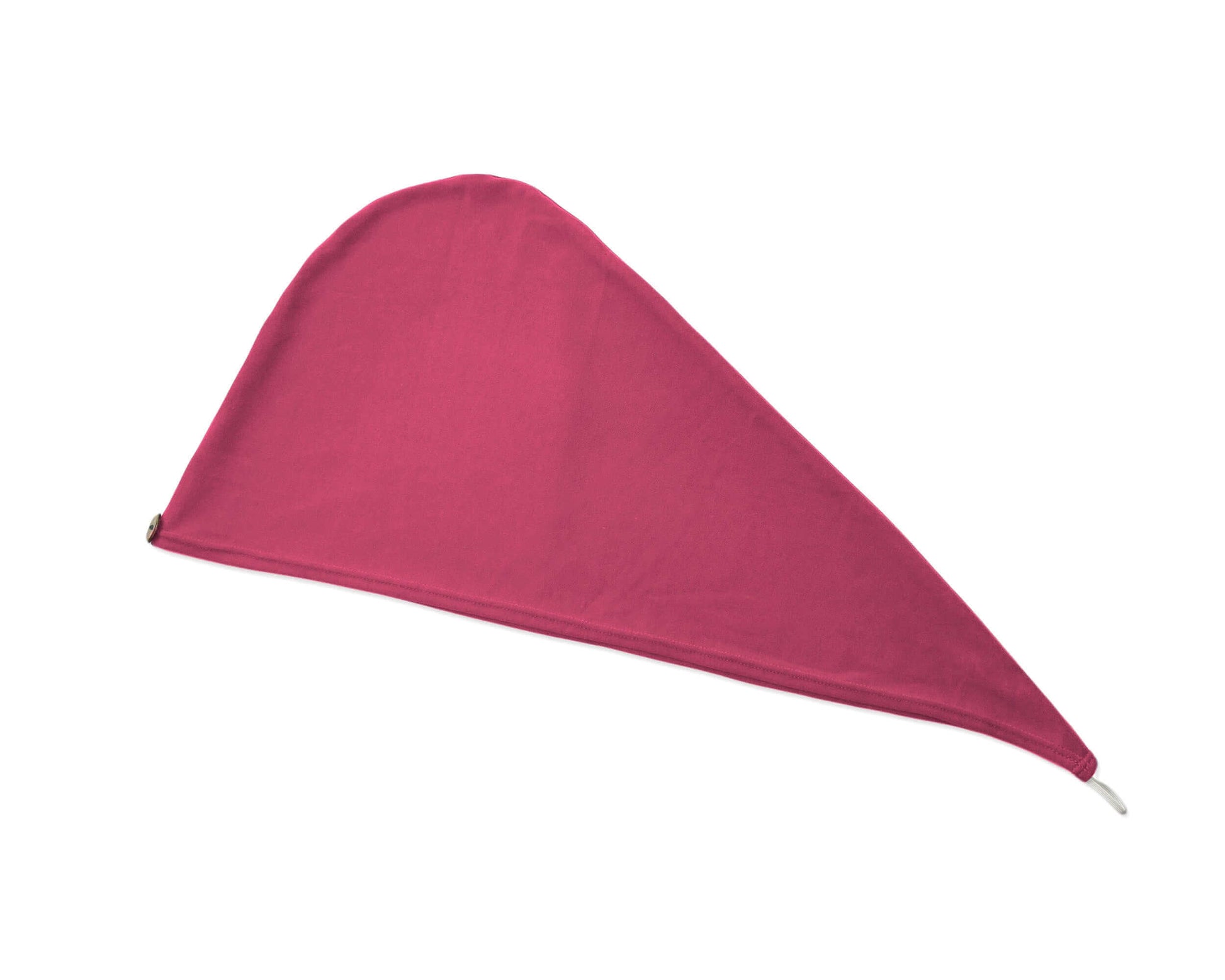 Prova oggi il nostro cappuccio asciugamano per capelli Berry Pink in maglietta e scopri la differenza che fa per la salute dei tuoi capelli e per l'ambiente!