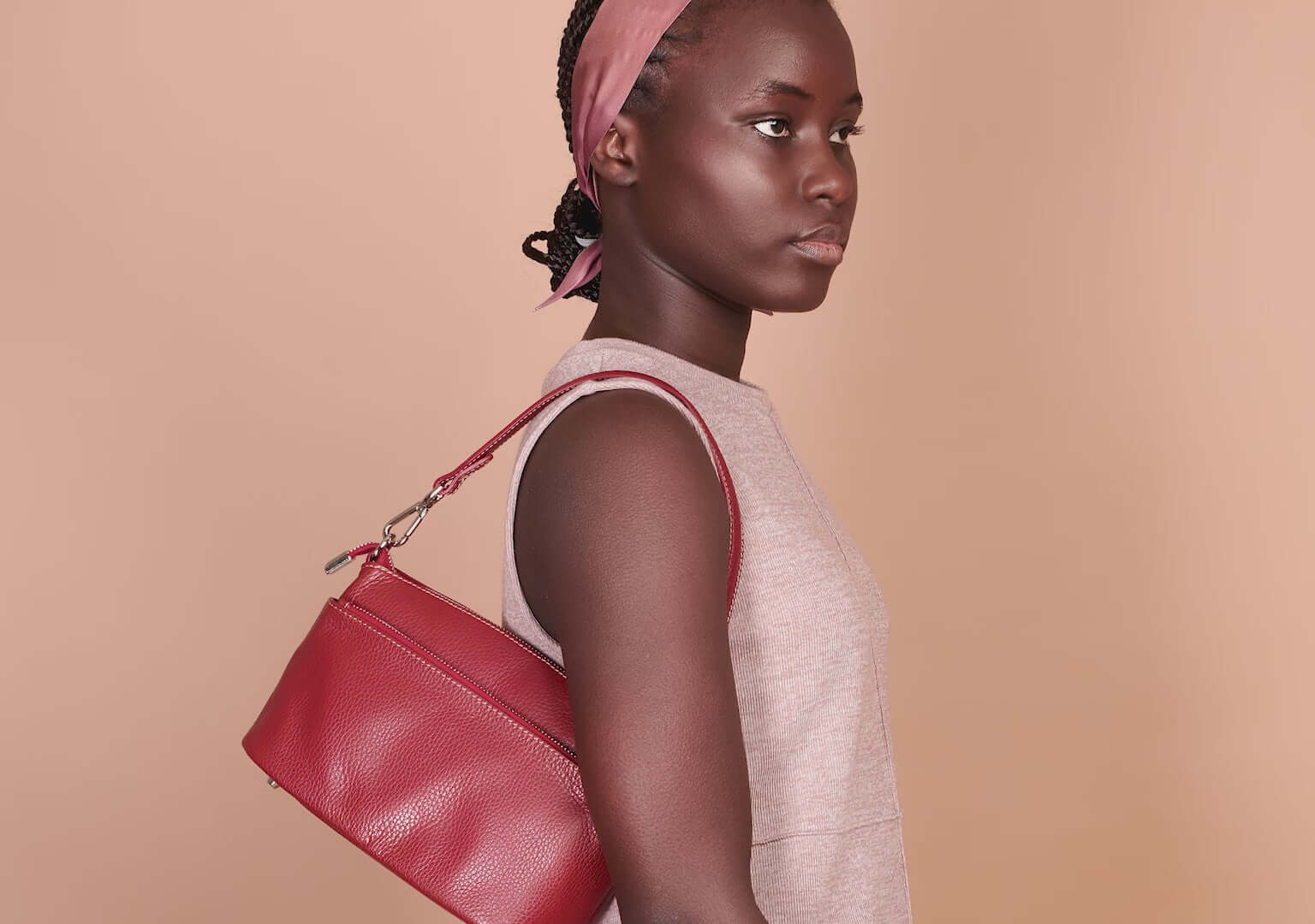 Rode Bourgondische Italiaanse leren schoudertas, kleine crossbodytas