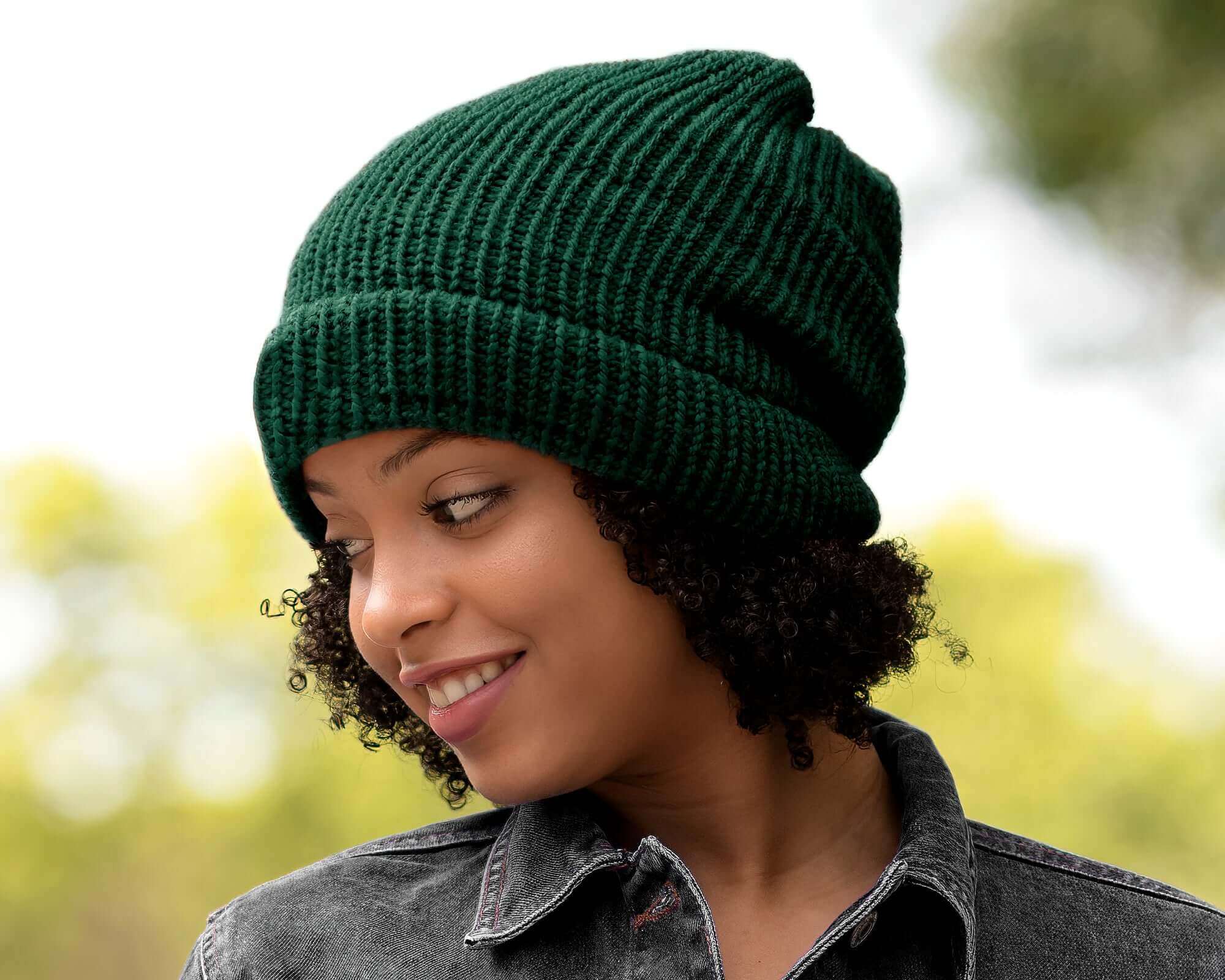 Smaragdgrön satinfodrad stickad mössa